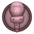 The current Pressbot insignia (left) is a microphone, representing their ability to announce the news to all the other Cogs around Toontown. As well, these cogs can be identified by their suits, which are pine brown with a diamond print and include a red tie on their chest. The old and unused Pressbot insignia (right) is a radio tower, representing their role in controlling media.